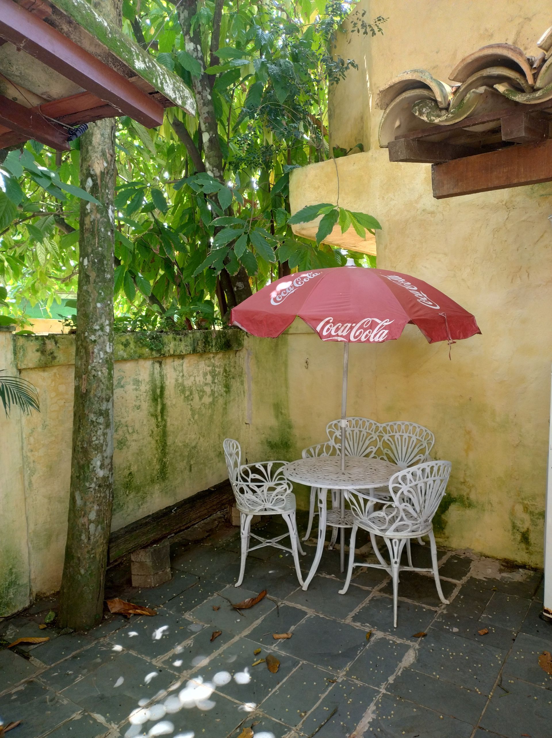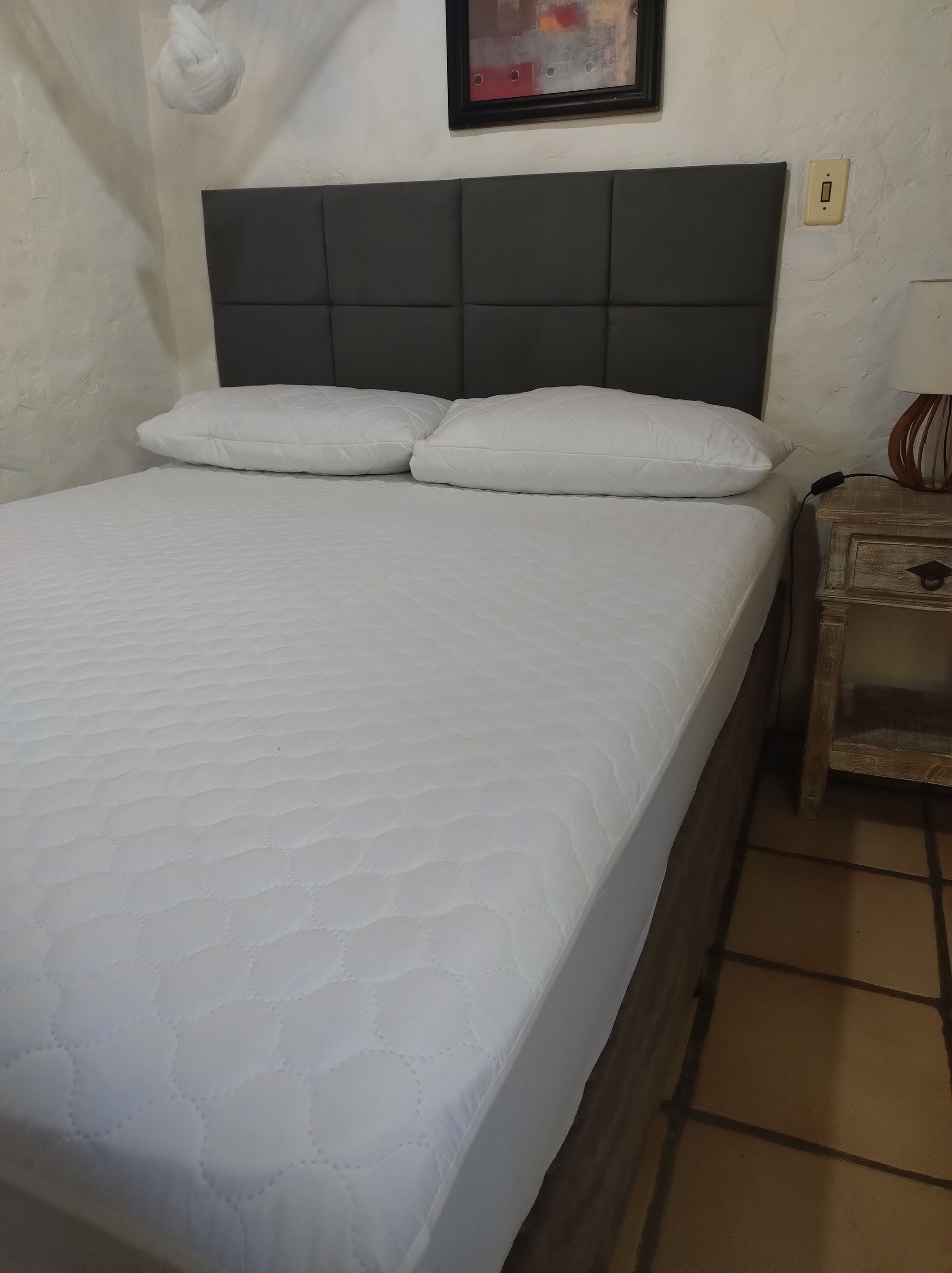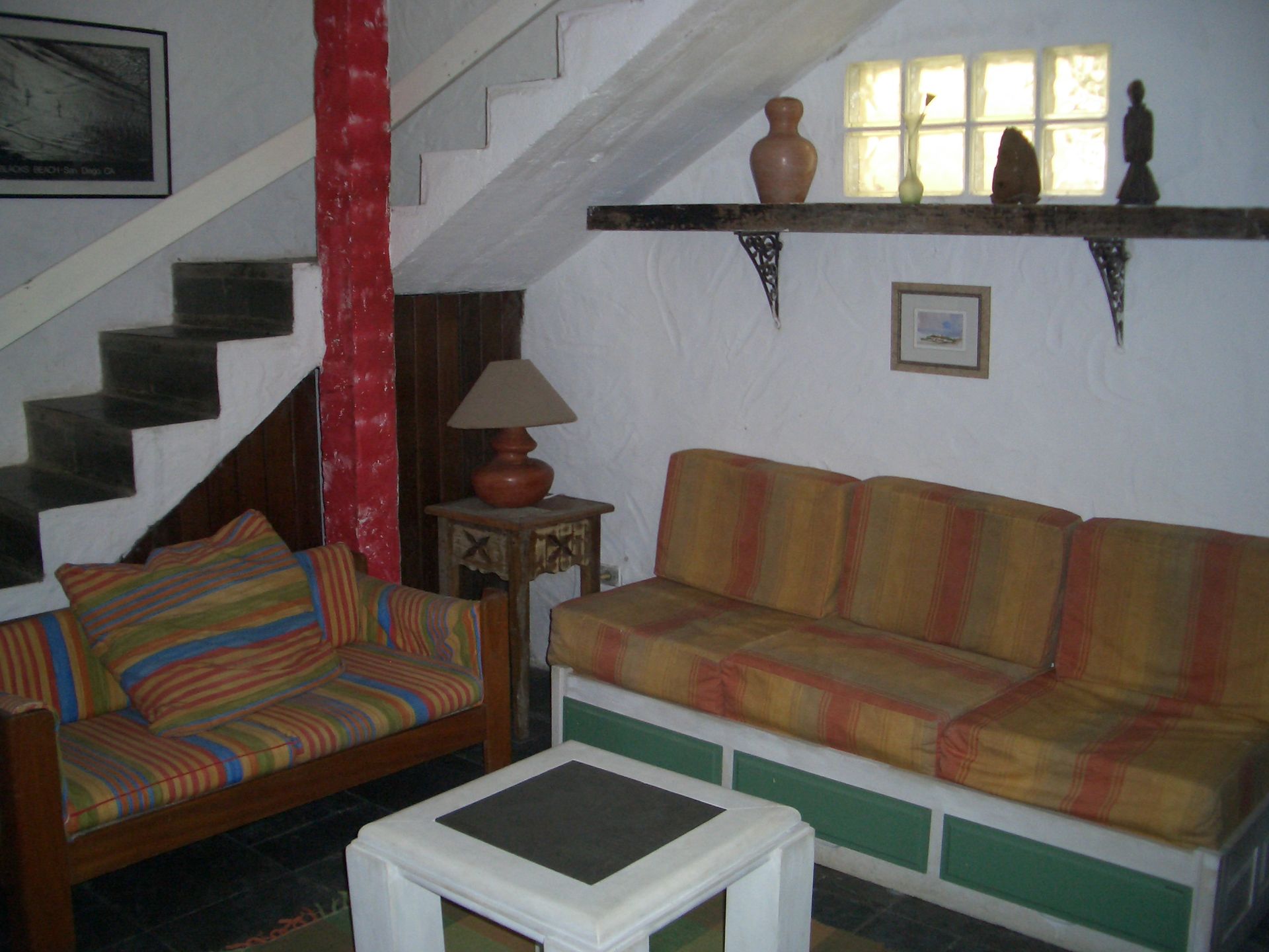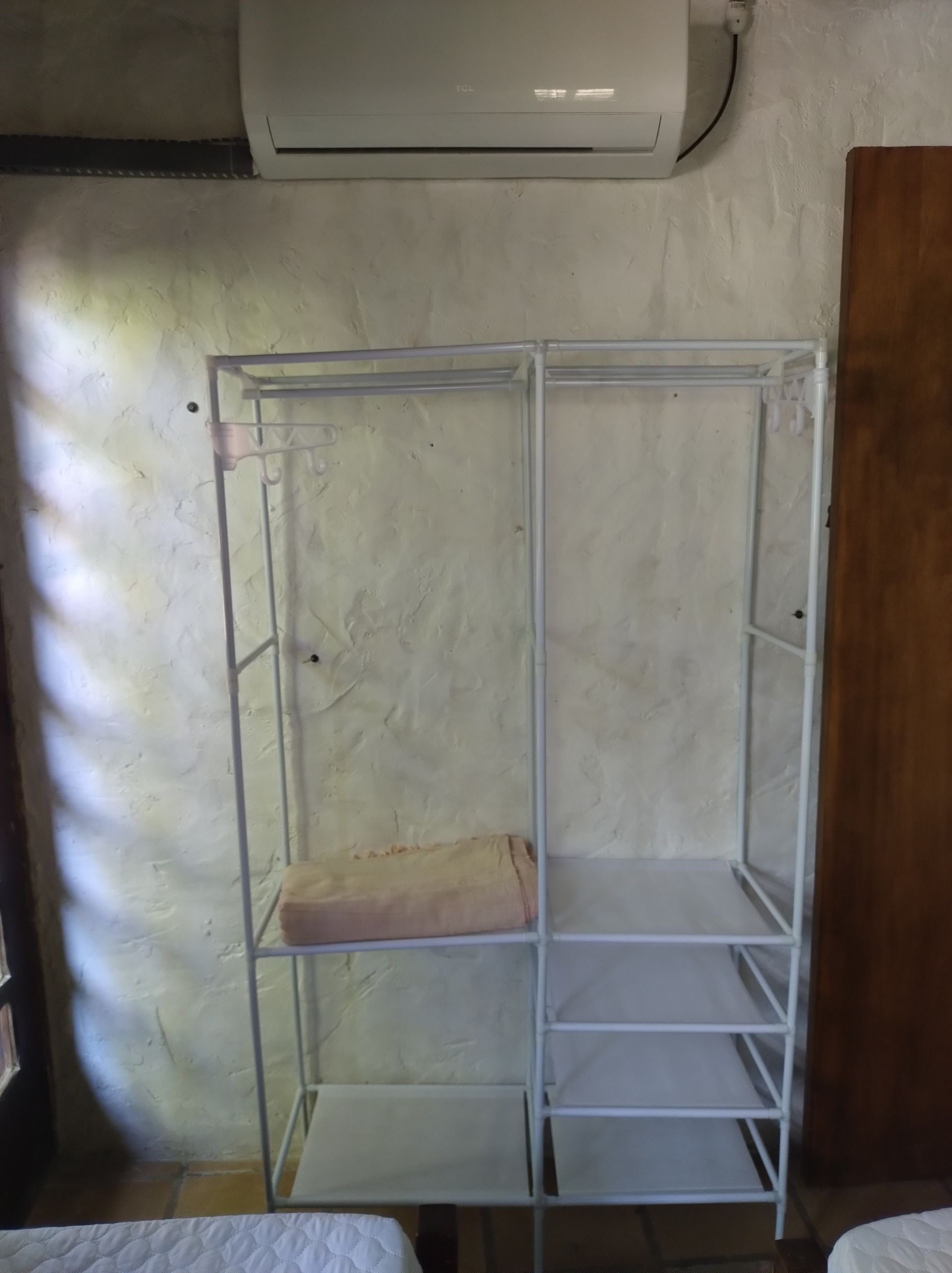 2 quartos, sendo 1 com cama de casal (mais um berço, quando necessário) e com ar condicionado, e outro quarto com 2 camas de solteiro e com ar condicionado/ banheiro / sala (com lareira) e 1 bi-cama/sofá / lavabo / cozinha / terraço / churrasqueira / estacionamento para 1 carro. (Para 5, no máximo 6 pessoas).