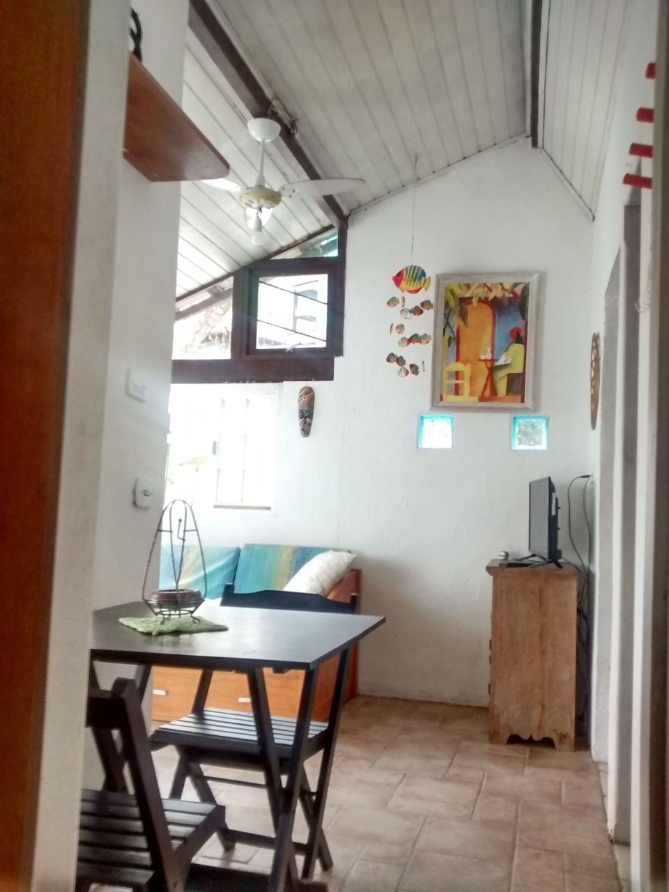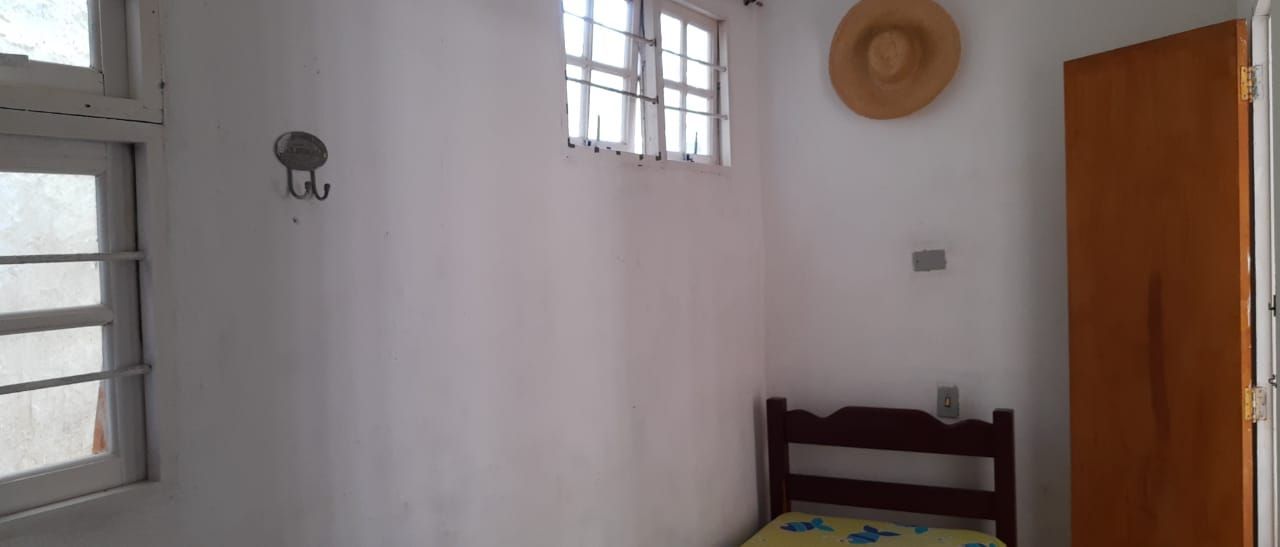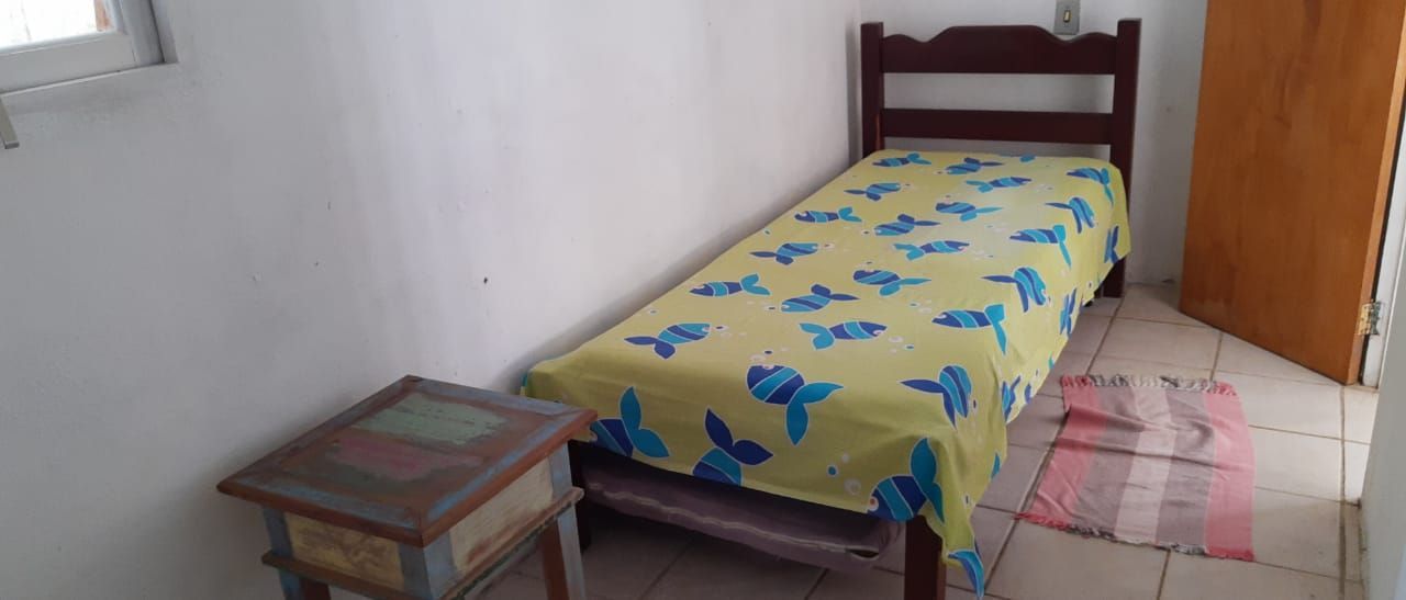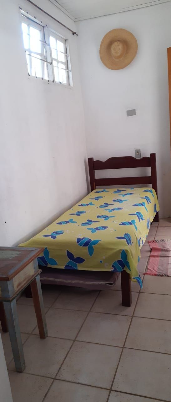 2 quartos, sendo 1 com cama de casal (mais um berço, quando necessário), e 1 com 1 cama de solteiro (c/1 colchão extra-cama rodinhas)/ sala (com bi-cama/sofá) / banheiro / cozinha / varanda / área externa / quintal / churrasqueira / estacionamento. (5 a 6 pessoas).