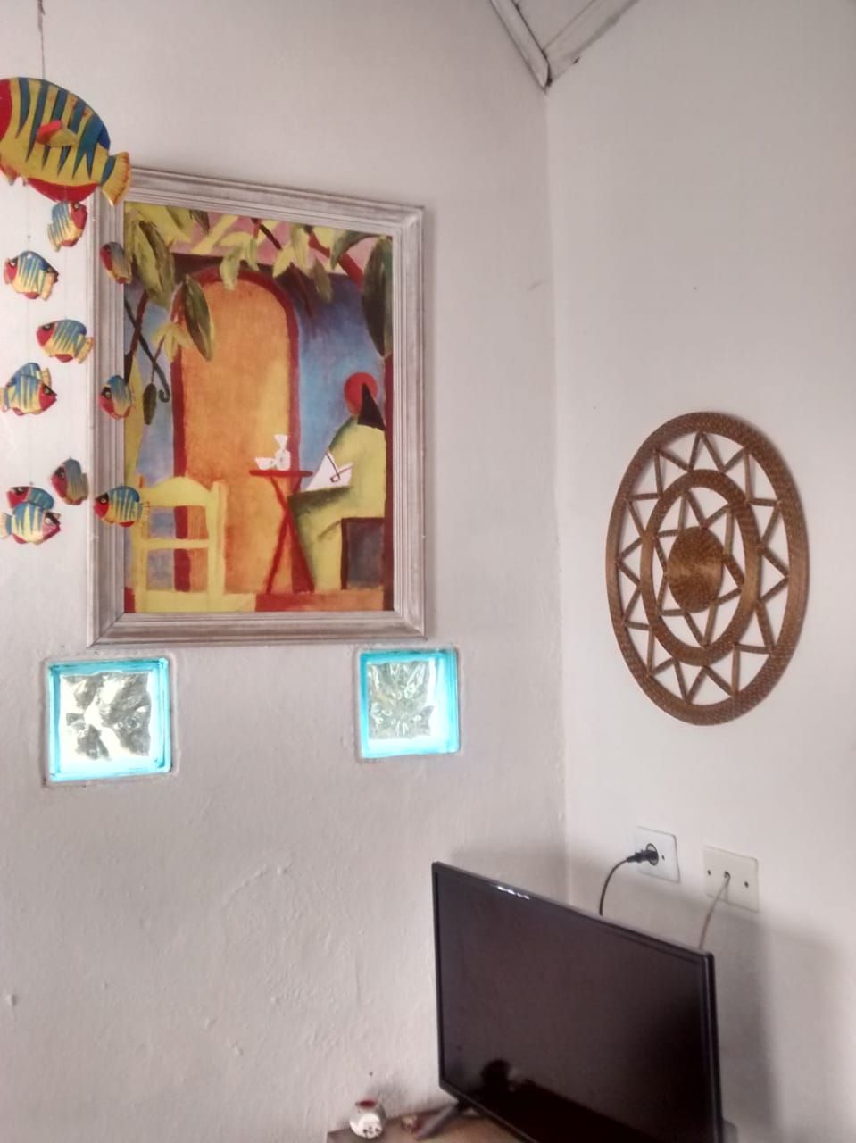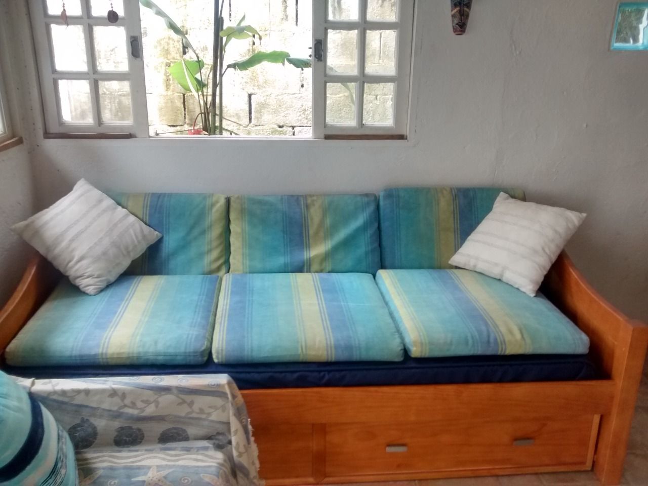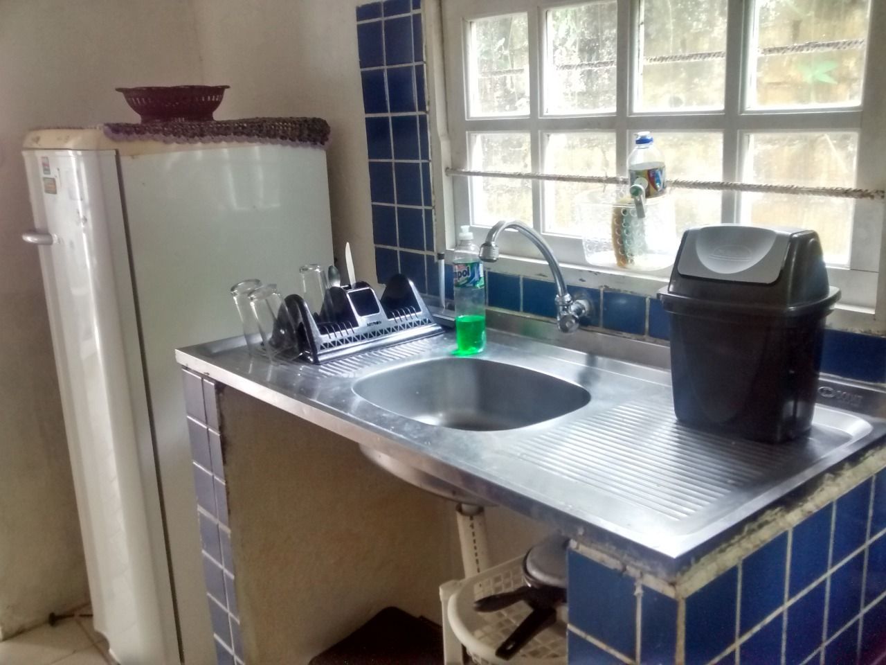 2 quartos, sendo 1 com cama de casal (mais um berço, quando necessário), e 1 com 1 cama de solteiro (c/1 colchão extra-cama rodinhas)/ sala (com bi-cama/sofá) / banheiro / cozinha / varanda / área externa / quintal / churrasqueira / estacionamento. (5 a 6 pessoas).