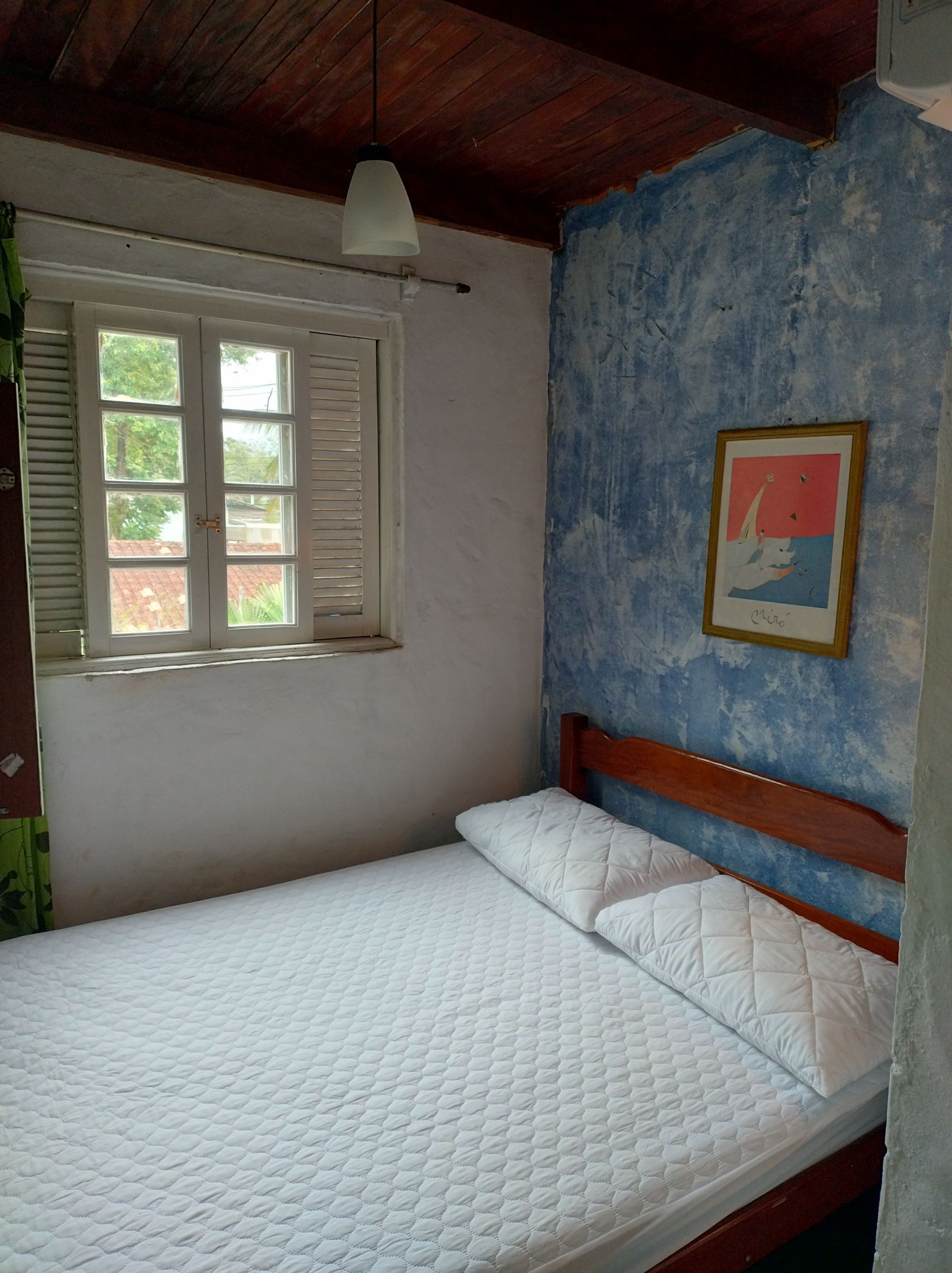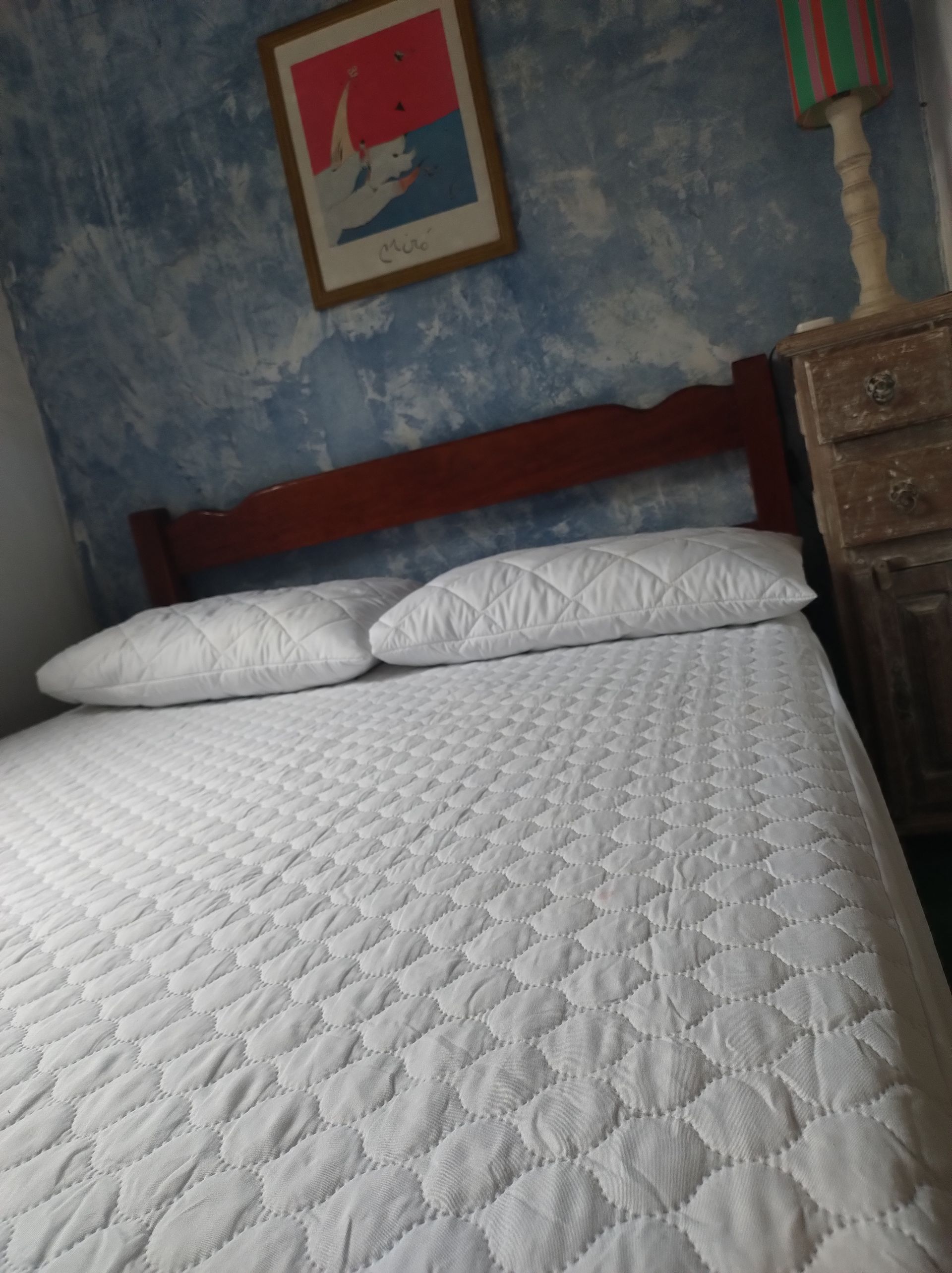 4 quartos, sendo 3 com cama de casal e com ar condicionado (mais um berço, quando necessário) e 1 pequeno com cama de solteiro (2 camas/colchões extras quando necessário) / 2 banheiros / sala / cozinha / área de serviço / terraço / varanda / churrasqueira / estacionamento para 2 carros.